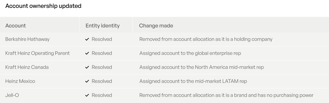 Identify the subsidiaries of Kraft Heinz and assign them to the right reps in Salesforce
